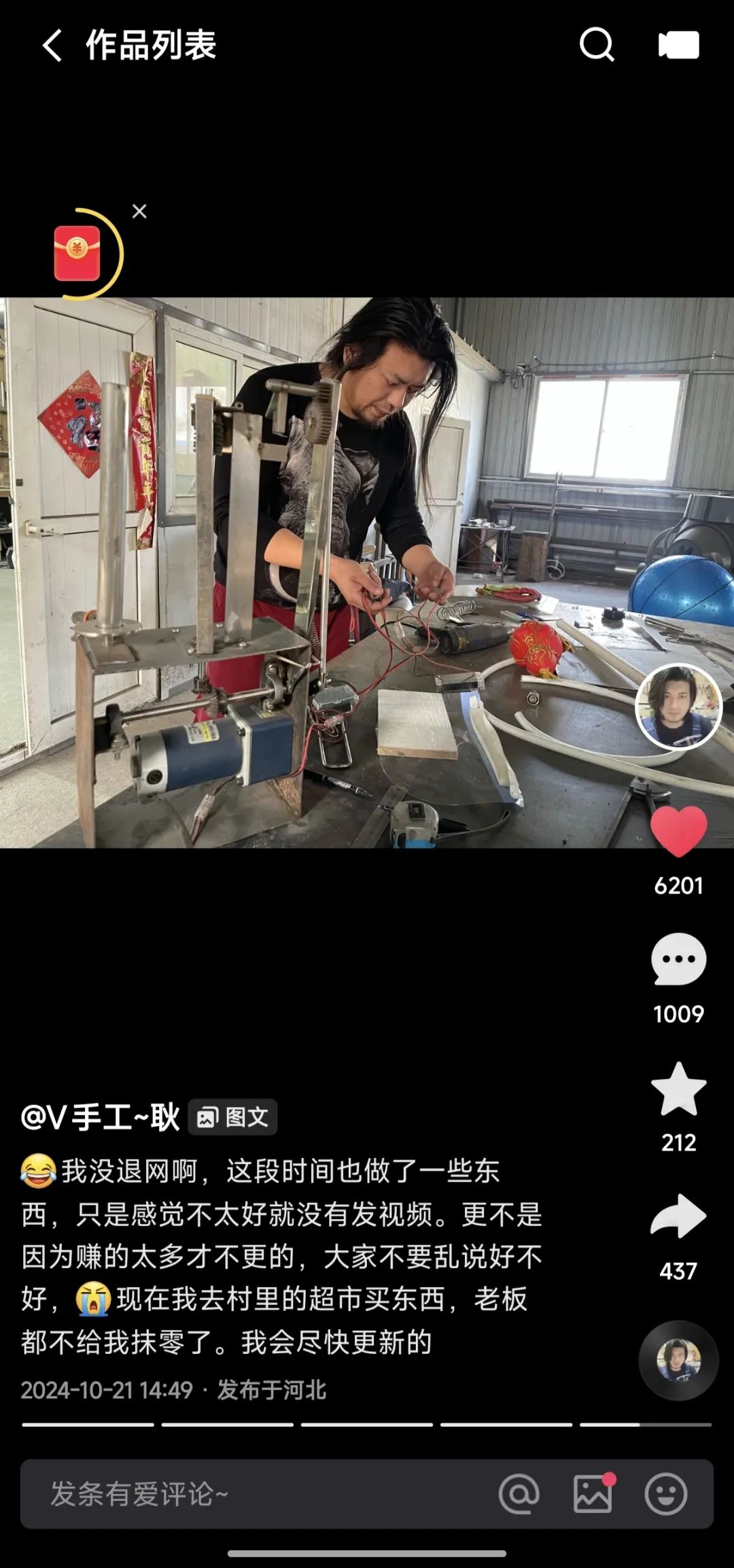 与此形成对比的是,即使新创作者已经有了良好的内容和稳定的数据,由于时间和空间的挤压,也很难再现@李子柒和@手工制作。~耿 成功,成为全民知名、深入人心的IP。