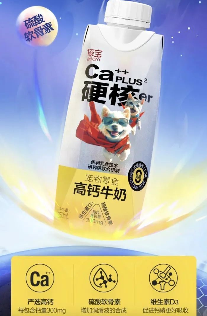伊利宠物牛奶是伊利宠物品牌“依宝”推出的产品。据悉,依宝达的主要公司是内蒙古康益佳生物技术有限公司,成立于2021年,由伊利集团100%控股。
