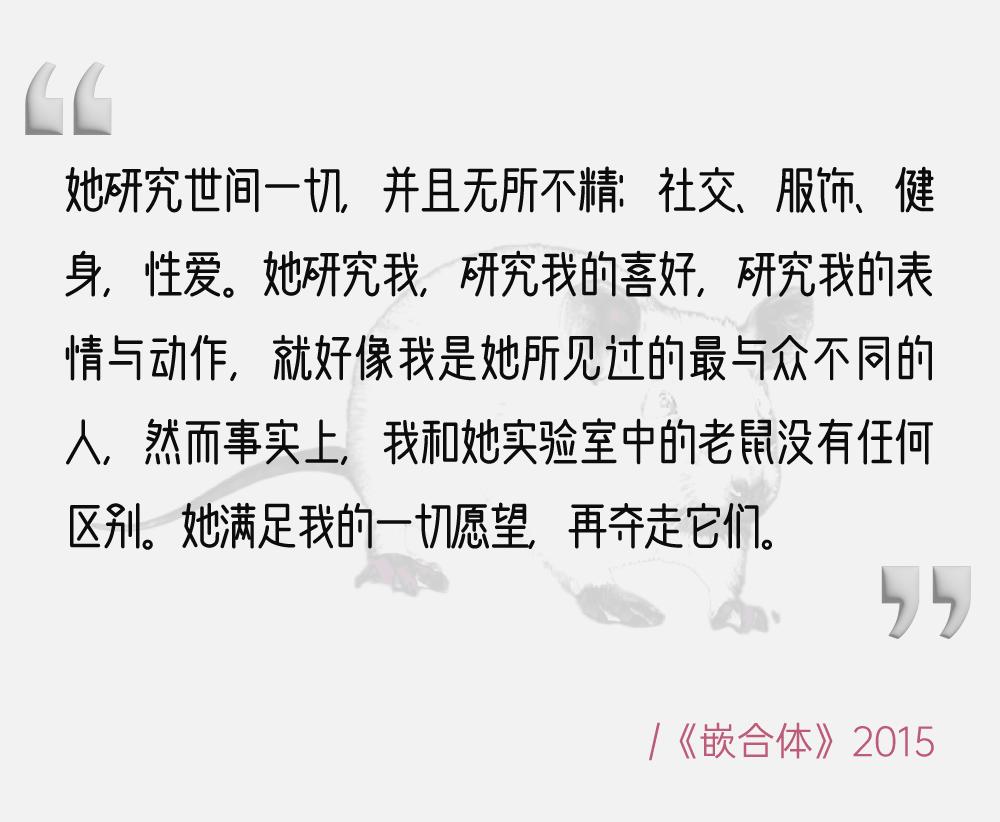 在这种想法下,我在2018年写了一部中篇小说《赌脑》(在这个故事中,就像赌石一样,你可以买别人的大脑来储存你的记忆和情感来理解这个世界)。《赌脑》的写作风格与之前所有的小说完全不同。我放弃了自己擅长的翻译腔和男性视角,用更具武侠感的语气写了一部有戏剧感的小说。对我来说,有点像“废号重练”,也极大地改变了我整个创作的性别观。
