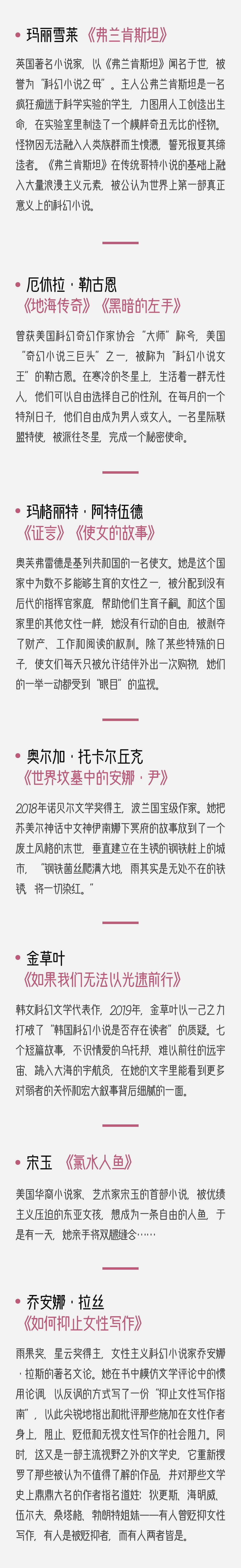 同年,她的《<2181序曲>《再版导言》入围了雨果奖最佳短篇小说,其中16位是不同职业的女性。