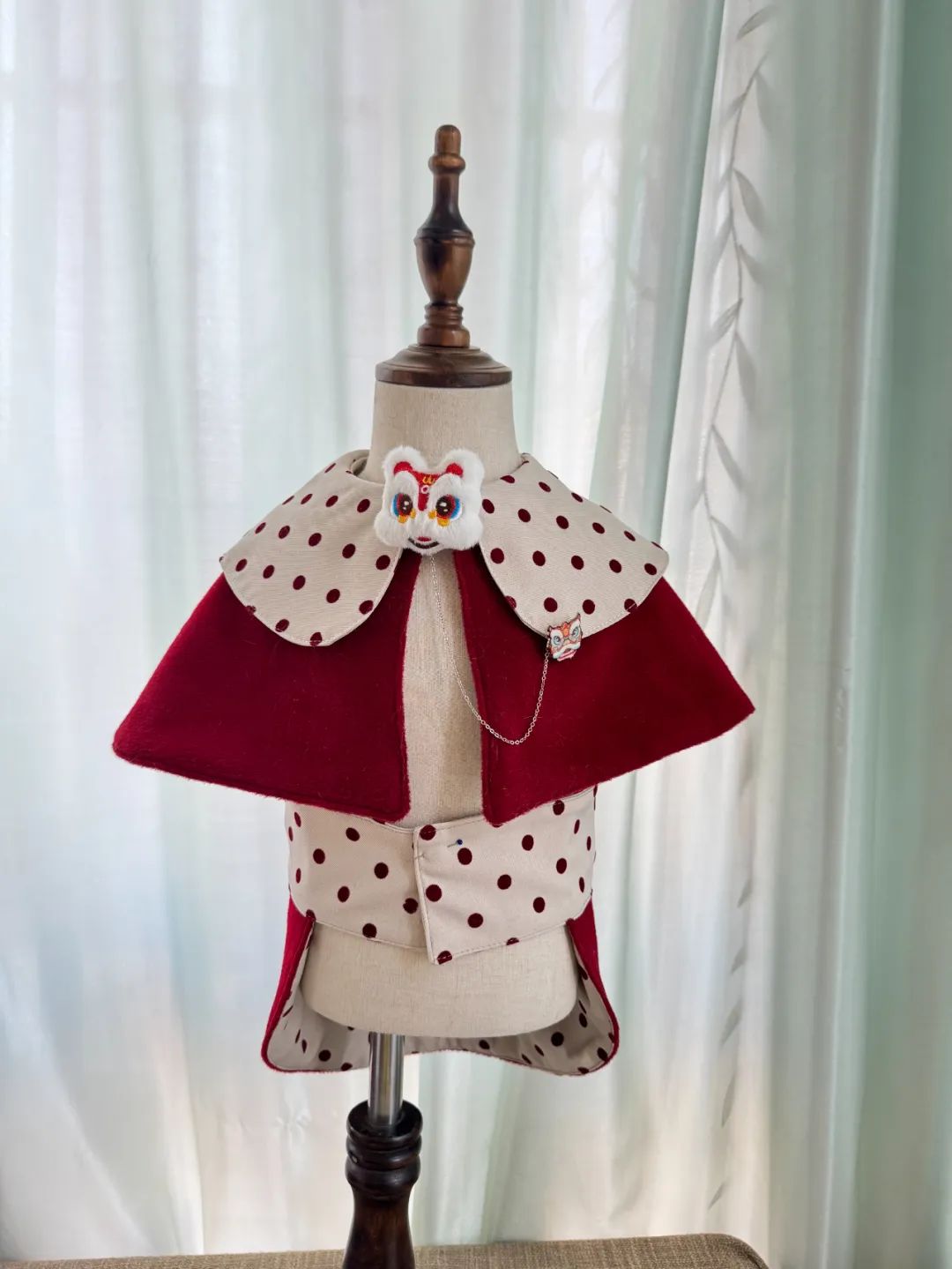 如今新中式风格越来越火了,我觉得狗穿新中式风格也会很漂亮,就在向新中式风格发展,用我以前做旗袍剩下的面料。