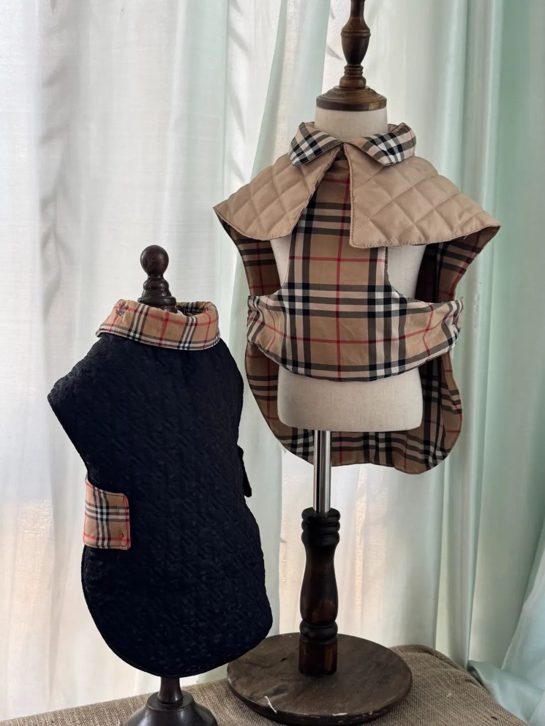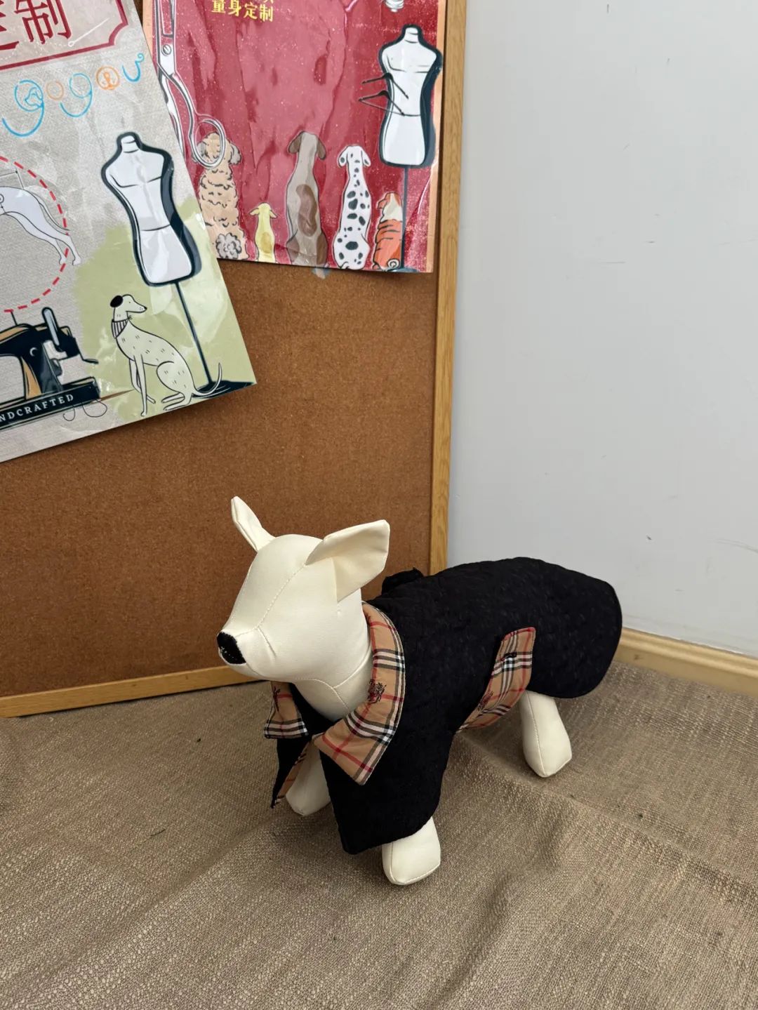 在做私人定制之前,我喜欢用英伦风格做西装,所以我把这种风格转移到了狗身上,做了一些英伦风格的格子和千鸟格子面料。在我开始定制私人宠物之前,中国其实已经有了定制的商家,但是他们的定制一般都是玛丽苏的裙子,洛丽塔的可爱款式,或者很多蕾丝都很华丽。英伦风格会有一点多样性和中性性。