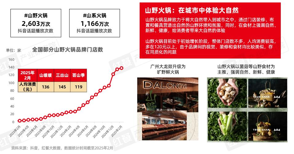 山野火锅也是2024年最热门的跑道之一。山野火锅强调自然、新鲜、健康。通过专注于细菌等山野食材,结合山野风格的装饰和布局,消费者可以在城市中感受到大自然的氛围。