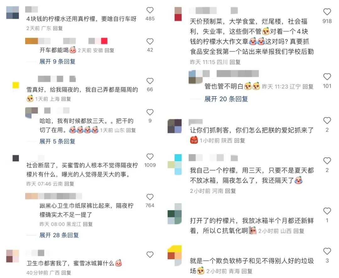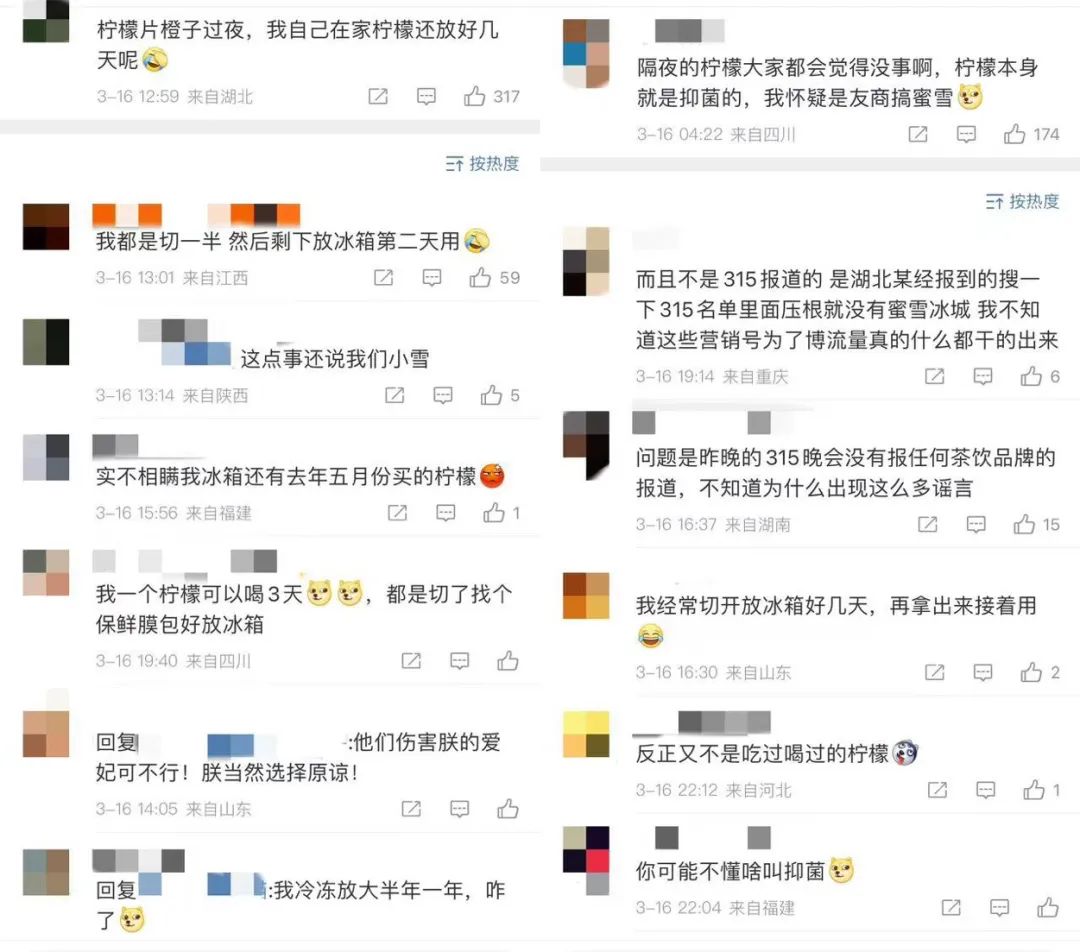 关于蜜雪冰城使用隔夜柠檬的报道 来源:网络