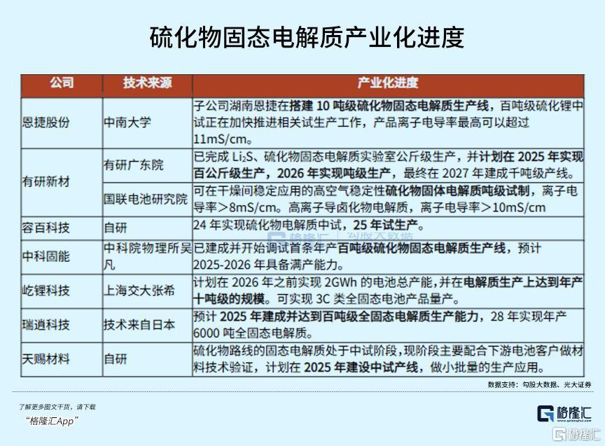 现阶段激发了硫酸盐全固态电池产业链的市场交易。增量逻辑环节包括硫酸盐固态电解质、干式电极辊压设施等。,代表企业包括恩捷股权、研究新材料、容百科技、粤桂股份、纳科诺尔等。