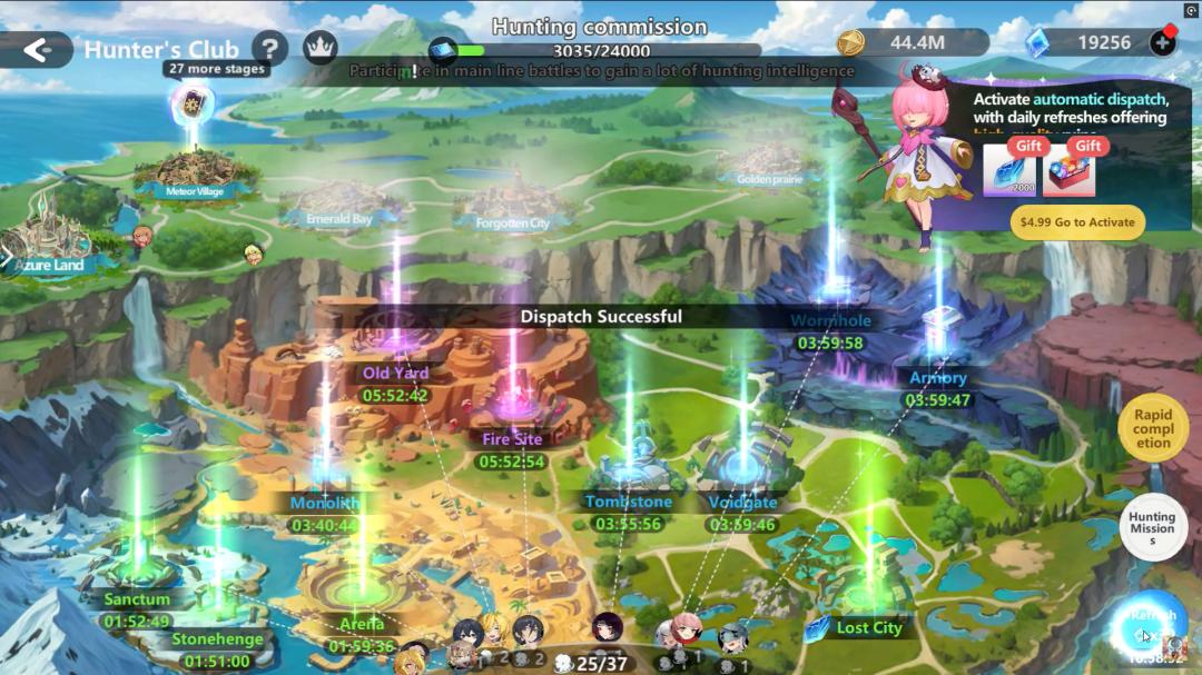 还有一款类似于外派的游戏,本质上还是指定角色在派驻一段时间后回收资源。但是它的UI设计看起来很像COK-likeSLG中的PvE游戏,可能是为了吸引特定客户。