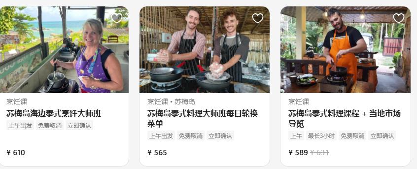 △在旅游服务平台上,可以预订烹饪课程。(图/网页截图)