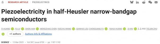 这项研究的突破证实了半赫斯勒窄带隙半导体作为非极性压电材料的可行性,其高温稳定性(至1173 K)、高机械强度和适中压电系数(30-40 pC/N)协同特性为极端环境(如航天工程引擎监测、核反应堆传感)和高频电子设备(如表面声波滤波器)提供了新的材料选择。未来的研究可以从多个维度深化:第一,压电系数可以通过缺陷工程进一步提高(如调整4d位置或引入混合物);二是扩展HH化合物系统(如含有稀有元素的ScNiSb或磁性成分的VFeSb),探索压电-磁电藕合等多功能特性;第三,开发低成本多晶HH薄膜技术,促进其在柔性电子或物联网传感器中的集成应用。另外,结合HH材料本征窄带间隙的特点,有望实现光-热-电-力多场耦合器件,为自供电系统和智能材料开辟全新的道路。虽然单晶体的生长难度和高导电性仍然是当前的挑战,但这项研究为窄带间隙半导体压电材料的研发奠定了理论和实验基石,这意味着一种新型高性能压电材料的兴起。