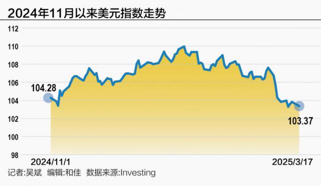 3 月 17 日本,衡量美元对六大货币指数下跌的美元指数 在汇市尾市收于0.34%。 103.37。与美国总统特朗普上任前美元的实力形成鲜明对比, 月 13 日本,美元指数一度突破 110 整数关口,创下两年多的新高。