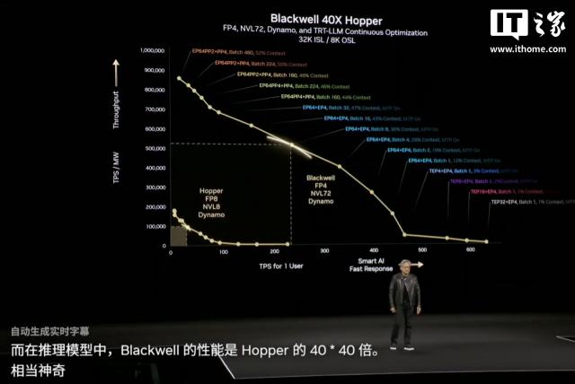 而且在推理模型中,Blackwell 的性能是 Hopper 的 40 倍。