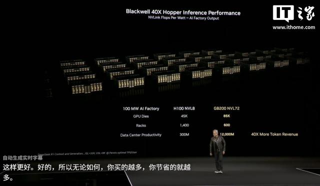 IT 家里人注意到,黄仁勋还开玩笑说,有了上面提到的最新技术加持,建设 AI 工厂制造商"买得越多,省得越多",总的来说就是掏钱吧。
