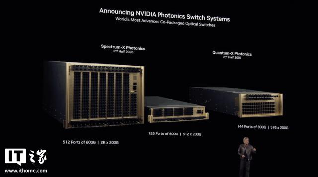 IT 这个家庭注意到,黄仁勋也宣布推出。 NVIDIA Photonics,到目前为止,它是最强大的。 Spectrum-X 以太网产品。Spectrum-X Photonics 和 Quantum-X Photonics 将在 2026 年年底推出。