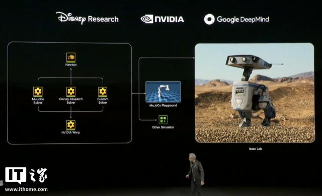 IT 世家 3 月 19 日消息,英伟达 GTC 2025 机器人、黄仁勋官宣、英伟达、谷歌是主题演讲的最后一个环节。 DeepMind、迪士尼合作,开发一个名字 Newton 机器人平台。