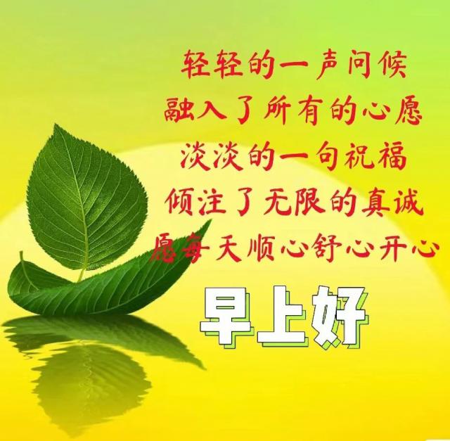 早上好,打招呼,包含关心和祝福。每天的问候不是一种方式,而是一种牵挂和关心。只有当你感恩的时候,你才能拥有它,珍惜它会永远持续下去。早上好!天天开心!