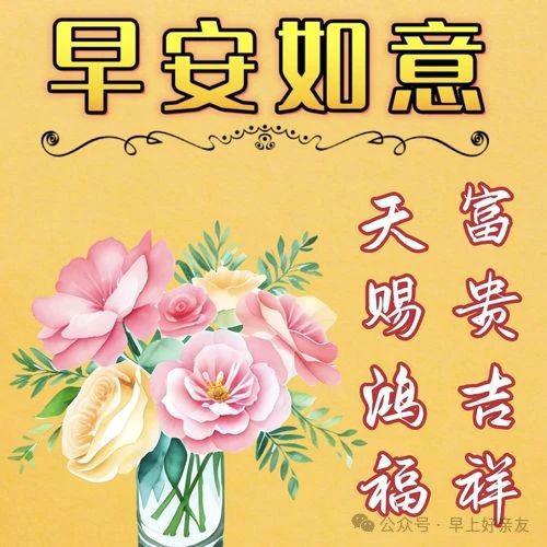 祝朋友们生活愉快,意气风发,努力工作,增强体质,体贴入微,充满威望,生活华丽,幸福美满,满脸红光,光彩照人,生活富足。早上好,祝你有美好的一天!万事如意,早上好,吉祥!