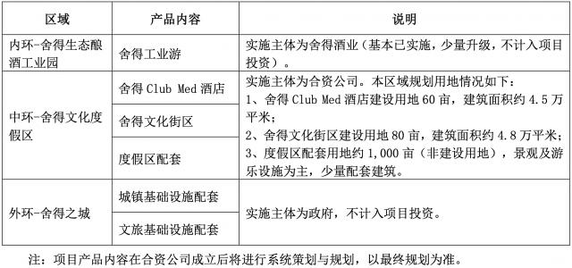 据了解,此次筹建的愿意酒旅结合项目涵盖了三大板块,即愿意生态酿造工业园区、愿意文化度假区和愿意的地方。因为愿意生态酿造工业园区的主体已经实施,愿意城市的实施主体是政府,所以这次 12 投资1亿元,多用于建设舍得文化度假区。