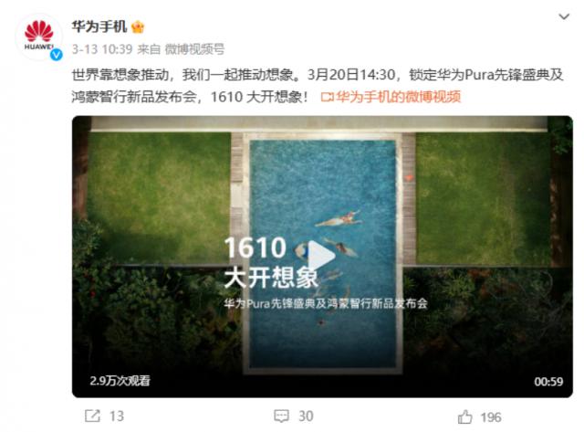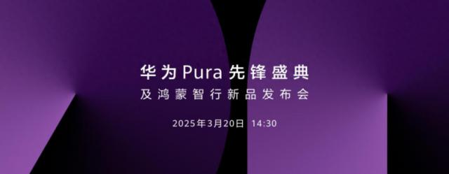 3 月 13 日本,华为终端正式宣布:华为 Pura 鸿蒙智行先锋盛典和新产品发布会将在 2025 年 3 月 20 日 14:30 举办。