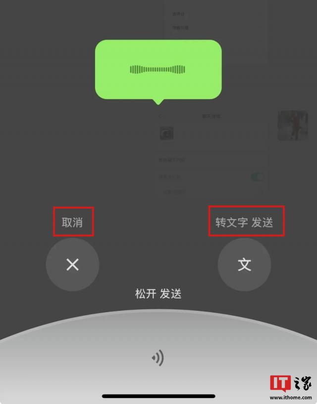 经过这次更新,这两个选项都有文字描述,分别是“撤销”和“转文发送”。