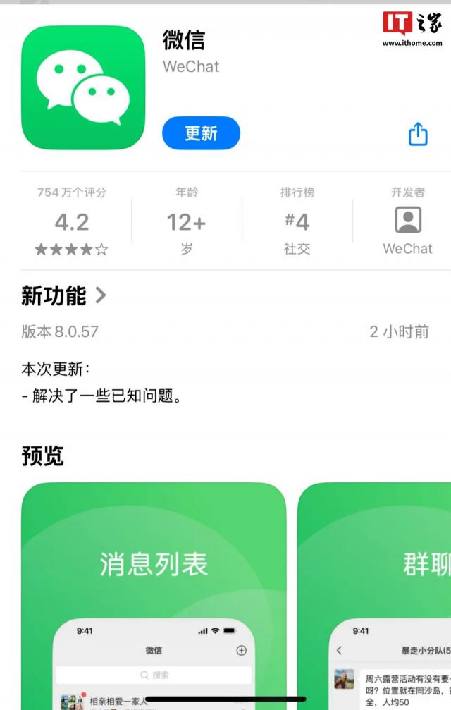可以在今天(3) 月 18 日)午时,微信推送了 iOS 平台的 8.0.57 正式版本更新。
