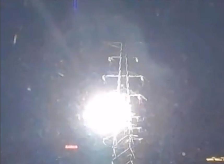 吉林长春某公园,2020年3月23日,一名男子风筝引发高压电塔爆炸,电塔起火。