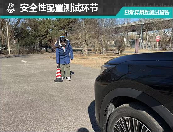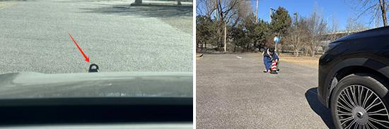 我们采用高度高度来测试前方视野阶段。 70cm 以桩桶为参考,然后调整车距,直到主驾驶座可以看到桩桶的上缘。经过测试,桩桶和车前最后测量的数据是 在测试过的同级别车型中,2.981m处于中下游水平。