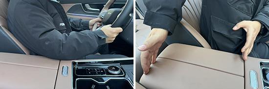 前排中央扶手尺寸适中,表面包裹皮革,舒适性好。虽然中央扶手不支持前后移动和角度调节,但司机在驾驶过程中仍然可以将肘部靠在上面。