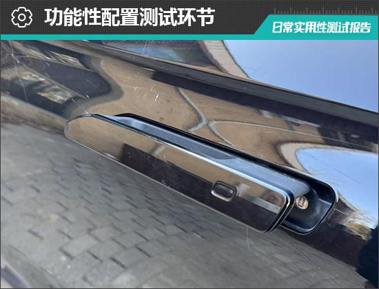 评估车配备了驾驶座无钥匙进入功能,只支持遥控钥匙进入模式。带着遥控钥匙来到车旁,车辆可以自动解锁,非常方便。锁车时,只需轻轻触摸门把手外侧的“凹陷”即可完成锁车,方便性更好。