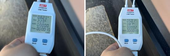 与此同时,我们对每一个 USB 测试了接口的电压和电流,前排 USB Type-C 接口的最高电压和最高电流是 8.23V 和 2.23A 上下;USB Type-A 接口的最高电压和最高电流是 5.01V 和 0.87A 上下。后排 USB Type-C 接口的最高电压和最高电流是 9.16V 和 1.55A 上下;USB Type-A 接口的最高电压和最高电流是 5.16V 和 0.1A 上下,整体表现可圈可点。