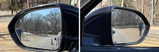 评测车子左 / 右外后视镜全部采用普通镜片,实测左外后视镜的视野范围为 22.8 °,处于同级下游水平;右外后视镜的视野范围是 22 °,处于同级上游水平。
