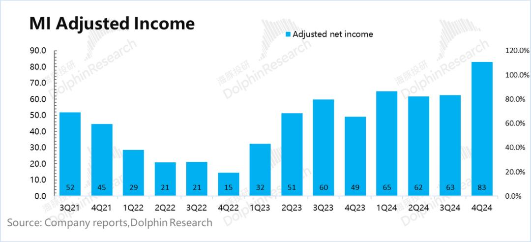 2024年第四季度调整后净利润83亿元,远超核心经营利润58亿元,同比增长69%,明显高于市场预测。