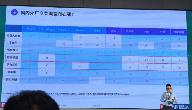 “中国人形机器人市场百花齐放,国内机器人玩家在整机方面优势更为明显,如优必选、小鹏、宇树科技、银河通用等。美国的人形机器人作为主机玩家并不多,有些厂商在做。 AI 大脑,小脑,它们在基本模型和平台操作系统、无框力矩电机等方面比中国制造商更强大。” 高级机器人产业研究所所长卢瀚宸说。