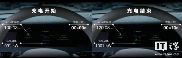 在 1MW(1000kW)的峰值功率, L EV 只用 10 几秒钟就充电了 20 公里的电量,真的做到了" 1 秒 2 全球量产最高峰充电效率为公里。