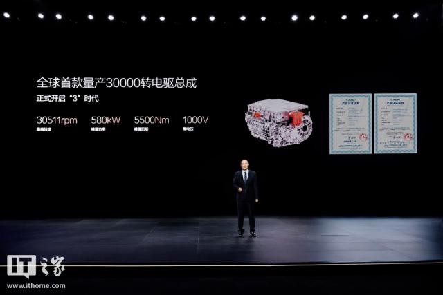 另外,比亚迪也发布了。全球首个量产产品 3 万转电动机总成,它的峰值功率就是我们之前在工业和信息化部看到的疯狂数字。 —— 580kW,一台电动机可以做到接近 800 匹马力。