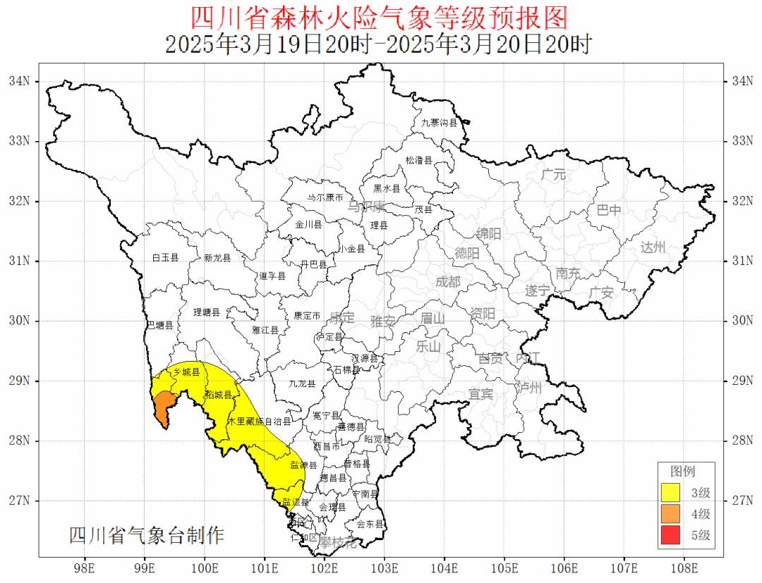 19日20时~21日20时,甘孜州西南部和攀西西部阴天有分散的阵雨(雪)。从下午到晚上,风很大。森林草原的火灾危险气象等级为3级,局部地区为4级。