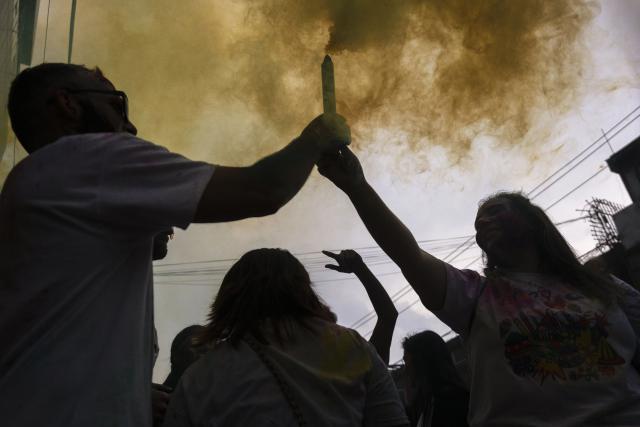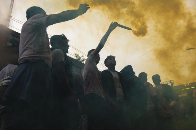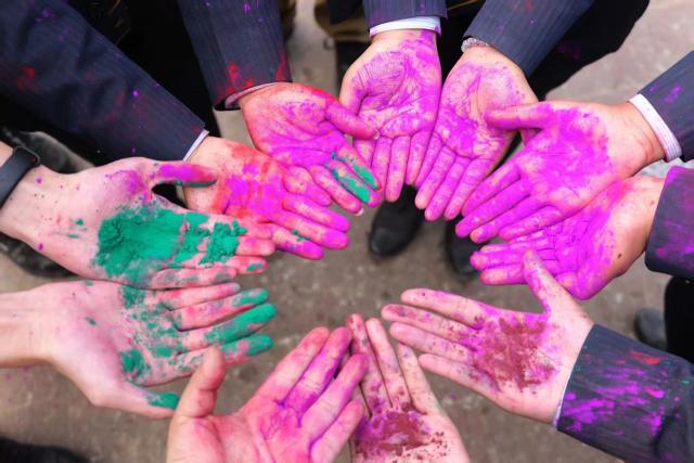 每个人都把一袋玫瑰粉倒进手里。手和衣服的深色调与粉末的鲜艳颜色相撞,就像一场微型爆炸,也预示着节日即将到来。 " 预演 ",对于这种需要高高举起的拍摄,S9 触摸翻转屏幕确实很方便。