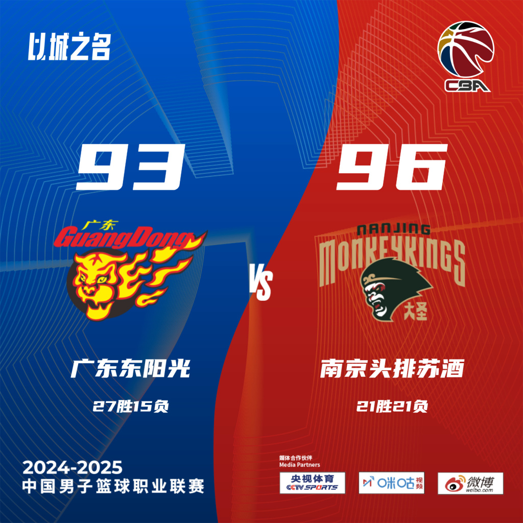最后一节,广东男篮连续三分夺回优势,但在决胜时,戴维斯内外结合连续得分5分,任骏飞三分无果。最后,同曦以96-93击败对手,球队历史首次进入季后赛。