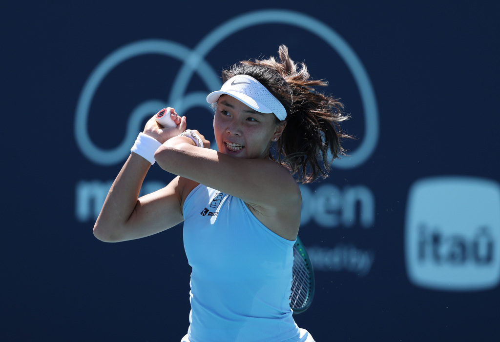 中国选手袁悦在北京时间3月19日凌晨,WTA1000迈阿密站首轮比赛。