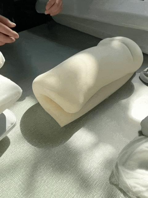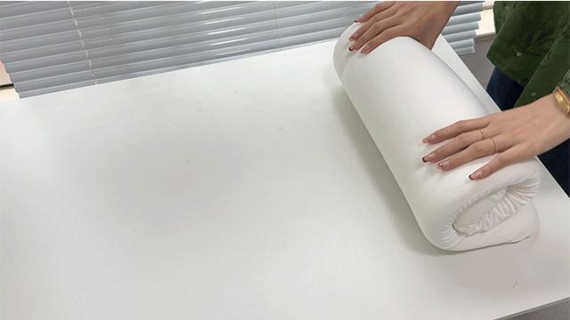 像这样用力将枕芯卷起来放开,历 5 几秒钟后才会完全恢复,特别好的缓冲效果!