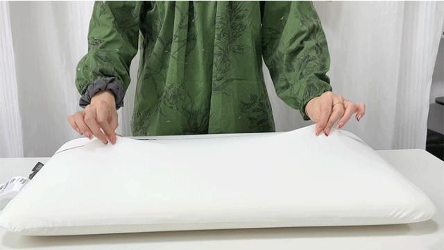 而且柔软有弹性,就这样轻轻一提,看得见的质感,与之相连,整个枕芯看上去非常轻盈。(表层不能拆卸)