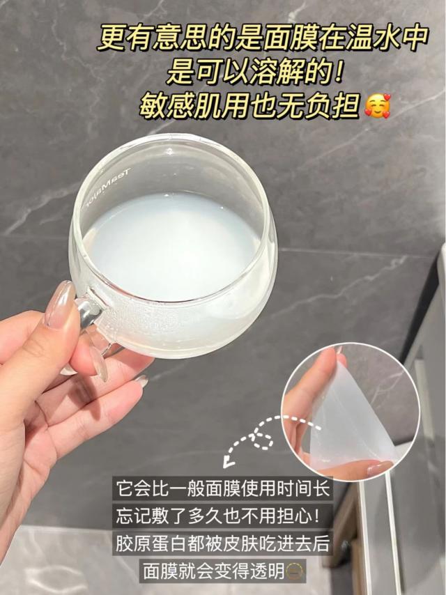 水解胶原可溶性膜布结合创新,温水可溶,手感柔软,使用感觉柔和有效,敏敏肌也可以安心使用。