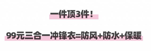 ✅一件顶 3 件!99 元三合一冲锋衣 = 抗风 防水、防污 保暖