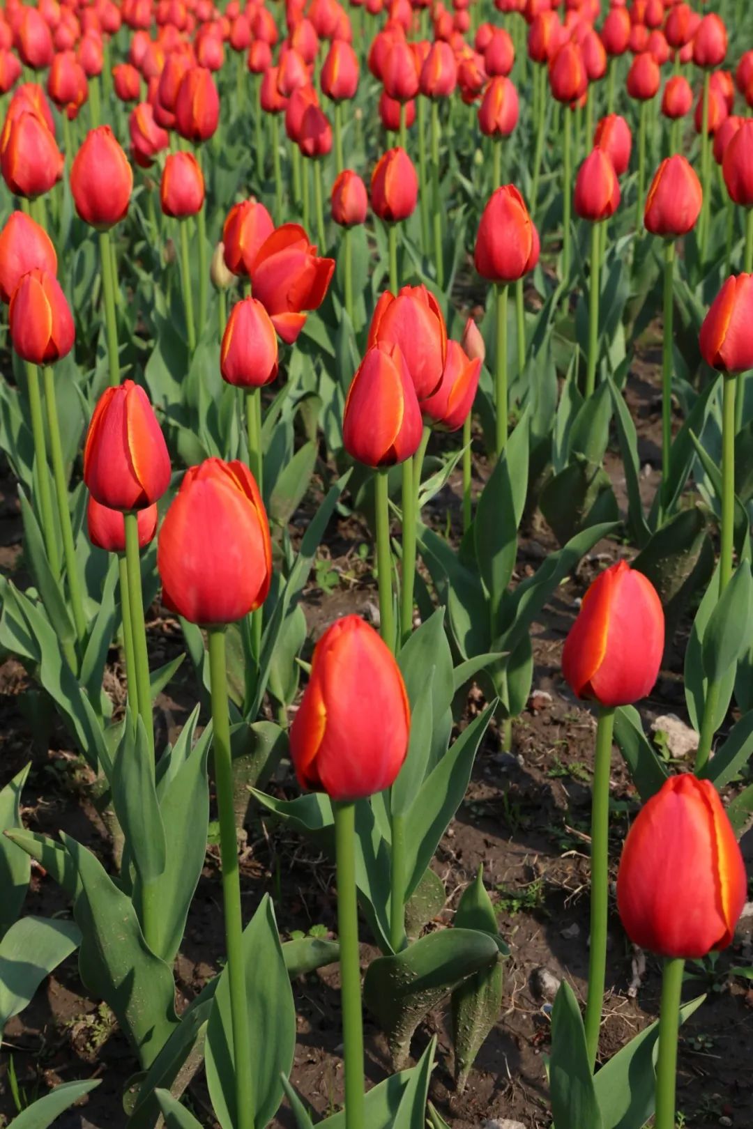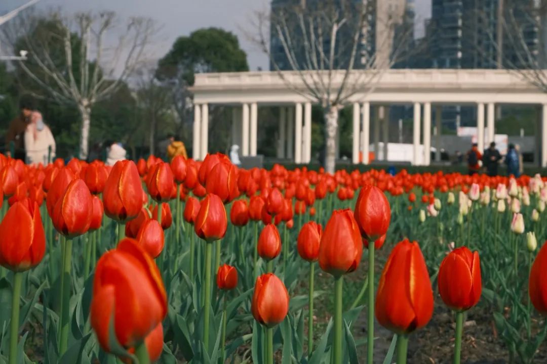这片花田紧邻罗马广场,以耀眼的红色郁金香为主。花瓣有的含苞待放,有的盛开温暖。在红色花海的背景下,罗马广场的乳白色建筑也更加优雅迷人。