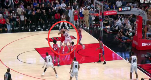 在离加时赛结束时,第二次错判发生了。 1 分 51 几秒钟后,申京被裁判吹走了。裁判们指出,当时贾里德 - 巴特勒打了申京的球,导致球脱落。申京再次控制球后的得分。这个球不构成非法行走。这个错误的判断也是火箭的损失,76 人盈利。