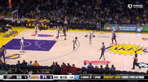 有时候,只要海斯或其他湖人球员在转换或半转换中设置一个拖动掩护,就可以使防守陷入混乱。