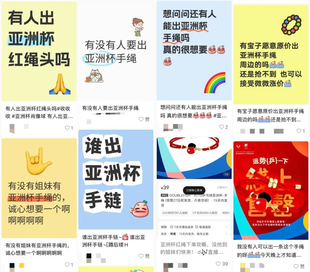 社会媒体上铺满了手绳求购信息