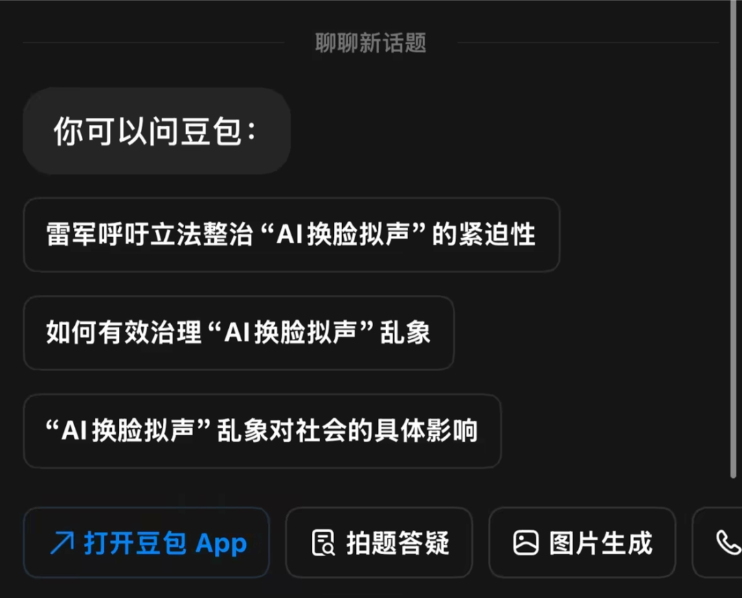 而且本月初,抖音App再次测试了接入豆包App的AI能力,为用户带来了更丰富多样的智能体验。