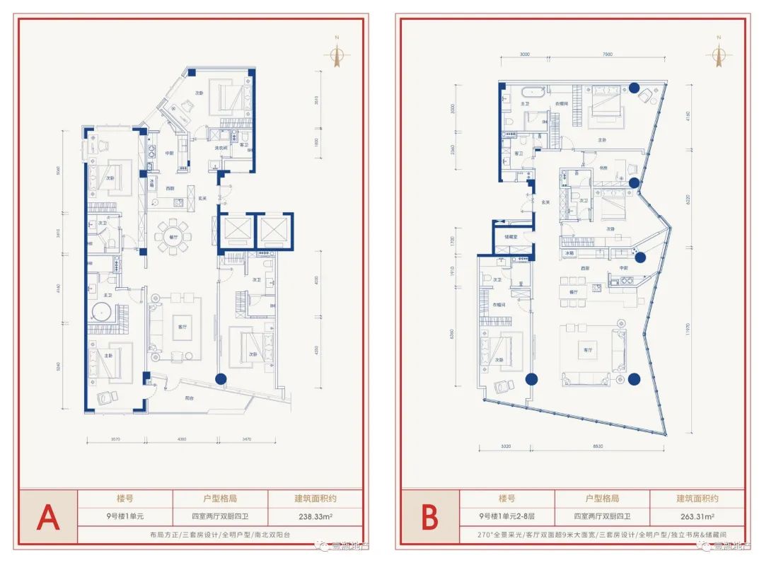 9号楼面积有2种,分别为238.33平方米和263.31平方米,这次新推,开发商重新建造了精装房。