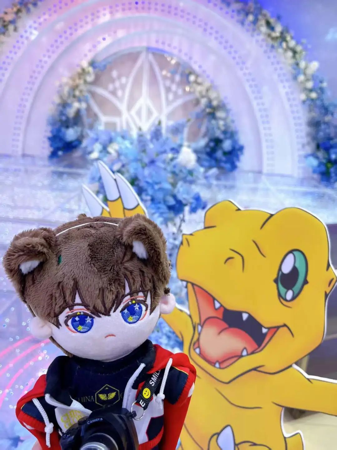 在Christina婚礼上,粉色城堡、鲜花等元素被复制,婚礼上的“数码宝贝”和“全职大师”棉花娃娃被贴上标签。本质上,它们是作为“二次元爱好者”公开宣传的,将童年与成年人联系在一起,抵制“成年人”的身份规定。在传统社会框架下开辟“自治领地”。