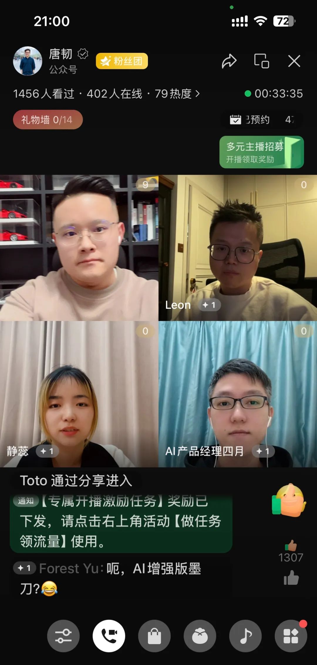 很久没有做公开直播了,昨晚开了一场,提前预约的人就有了。 900 多,3 共有一小时下来 5000 很多人加入了直播间。