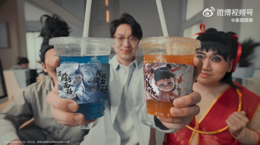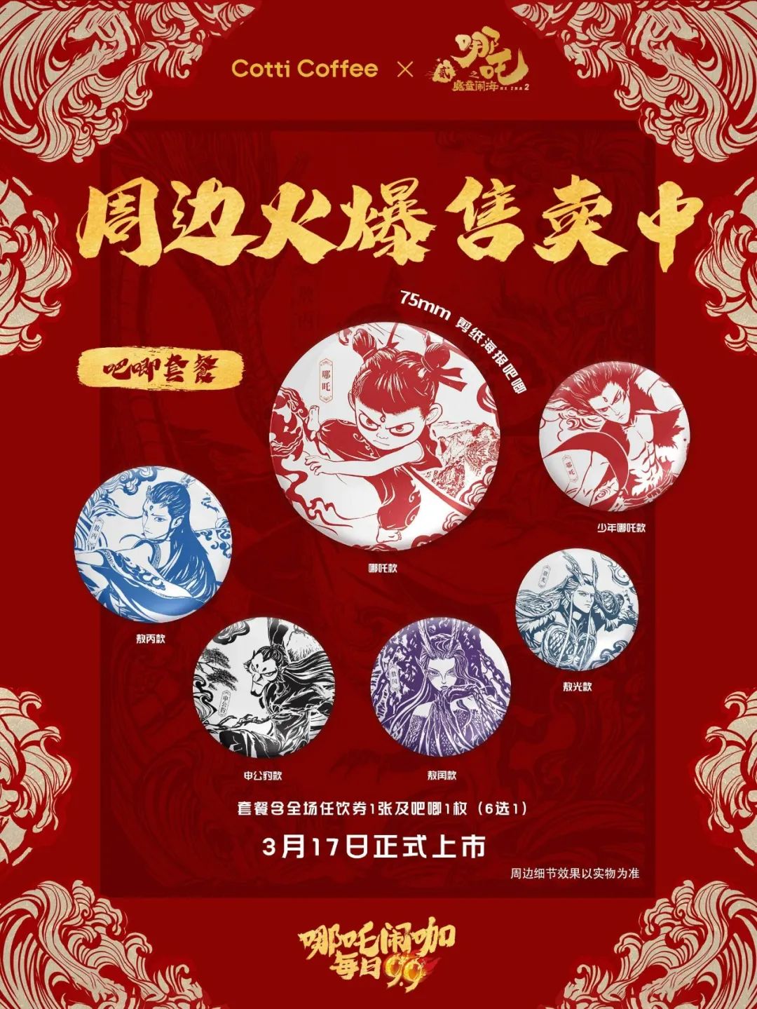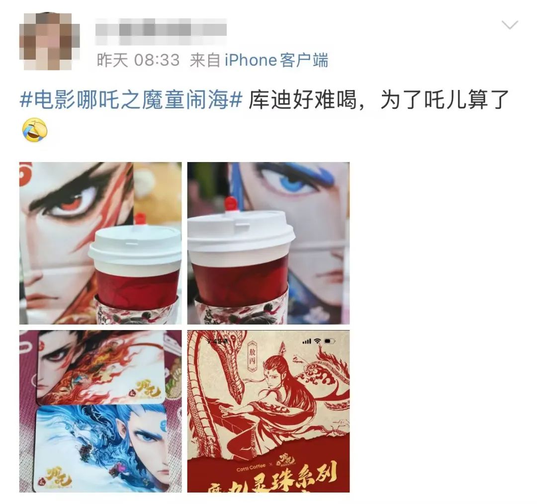 新茶、咖啡连锁品牌春节档爆款《哪吒2》联名,首棒交给库迪。